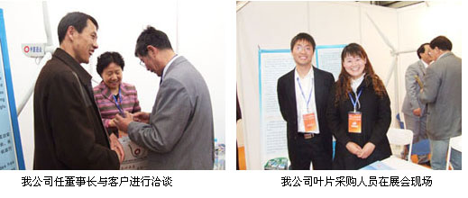 2007年4月12日,為期三天的中國(上海)國際風(fēng)能展覽暨研討會(huì )圓滿(mǎn)結束,中復連眾作為國內兆瓦級風(fēng)力發(fā)電機葉片的生產(chǎn)制造商參加了此次展會(huì ),中復連眾公司董事長(cháng)任桂芳、總經(jīng)理喬光輝10-11日來(lái)到展會(huì )現場(chǎng),并對我公司的葉片展出工作表示滿(mǎn)意。