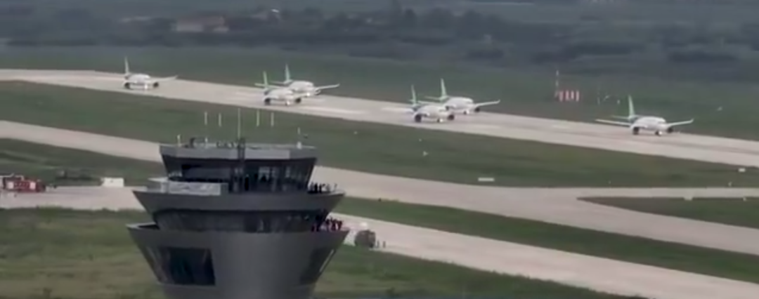 7月19日,在C919大型客機六架試飛機圓滿(mǎn)完成全部試飛任務(wù)之際,C919大型客機試飛現場(chǎng)聯(lián)合指揮部閻良戰區在陜西渭南機場(chǎng)召開(kāi)總結大會(huì )。