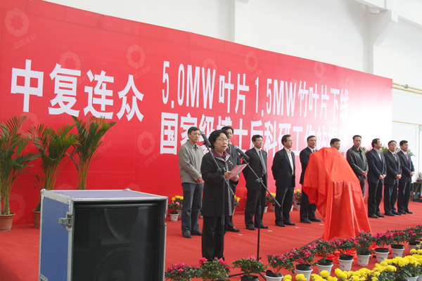 中國建材集團董事長(cháng)宋志平,連云港市委書(shū)記、市人大主任王建華,連云港市政府市長(cháng)徐一平,中國風(fēng)能專(zhuān)業(yè)委員會(huì )秘書(shū)長(cháng)秦海巖,中國建材集團副總經(jīng)理馬建國,連云港市委常委張光東、唐國海、副市長(cháng)施炎,江蘇省人力資源和社會(huì )保障廳專(zhuān)家和國際合作處處長(cháng)金凡,中國復合材料集團有限公司董事長(cháng)、總經(jīng)理張定金出席慶典儀式。中國復合材料集團有限公司副總經(jīng)理、中復連眾董事長(cháng)任桂芳主持儀式。