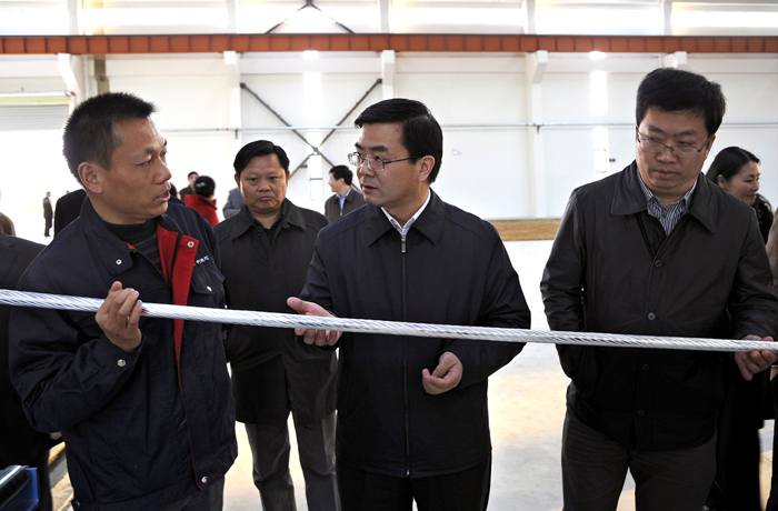 11月13日,在市委常委、市開(kāi)發(fā)區黨工委書(shū)記關(guān)永健的陪同下,連云港市市長(cháng)楊省世帶領(lǐng)市相關(guān)部門(mén)負責人實(shí)地視察了碳纖維復合芯導線(xiàn)項目建設情況。楊市長(cháng)詳細詢(xún)問(wèn)項目建設、生產(chǎn)情況和發(fā)展計劃,了解企業(yè)在發(fā)展中遇到的困難和問(wèn)題。