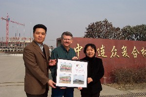 1 中復連眾董事長(cháng)任桂芳女士、總經(jīng)理喬光輝先生和CSPC南海項 目的催交經(jīng)理 Clayton Miles先生在公司門(mén)前合影2 生產(chǎn)中的GRP管道3 CSPC南海項目首批GRP管道出廠(chǎng)4 CSPC南海項目首批GRP管道現場(chǎng)卸貨