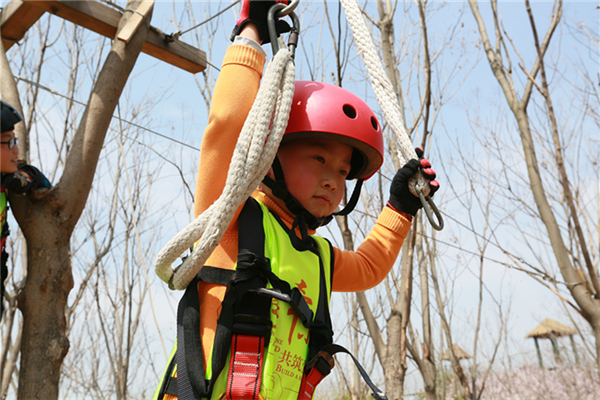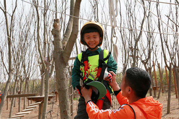活動(dòng)當天,所有參加人員身穿統一服裝來(lái)到葉片事業(yè)部連云港工廠(chǎng),葉片事業(yè)部的領(lǐng)導們?yōu)樾∨笥杨C發(fā)了紀念品以示歡迎。他們先后參觀(guān)了公司的葉片實(shí)驗臺、16#生產(chǎn)車(chē)間及多功能展廳。孩子們看到展廳里隨著(zhù)音視頻轉動(dòng)的葉片,一個(gè)個(gè)興奮地爭先合影。一個(gè)小朋友看到多維葉片模型直呼是爸爸做的,逗得旁人一陣笑。隨后,所有人員乘車(chē)來(lái)到拓展基地開(kāi)展戶(hù)外親子活動(dòng),活動(dòng)共準備了3個(gè)節目:叢林探險、互動(dòng)小游戲、動(dòng)物表演秀。叢林探險的每個(gè)環(huán)節都充滿(mǎn)挑戰,小朋友們需要在父母的支持與鼓勵下逐級過(guò)關(guān),小游戲環(huán)節則需要孩子們獨立完成,汗水與歡笑在孩子們紅撲撲地小臉上洋溢著(zhù),最終每個(gè)孩子都獲得了工作人員精心準備的獎品,個(gè)個(gè)滿(mǎn)載而歸。一位來(lái)自一線(xiàn)的員工說(shuō)道,自己平時(shí)工作忙,很少有機會(huì )陪孩子玩,在這次親子活動(dòng)中,可以和孩子一起互動(dòng)玩游戲、看表演,感覺(jué)特別幸福。